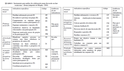 De forma a promover o incentivo à participação ativa dos alunos foi utilizado o esquema de análise de interações proposto por Loureiro (2009), que avalia as seguintes dimensões: