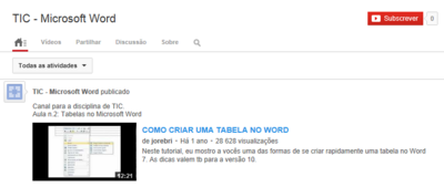 Cada aluno criou o seu canal de vídeos com a lita de reprodução partilhada, inserindo os vídeos que achavam interessantes em momentos oportunos do ano letivo e com informação significativa sobre determinados conteúdos lecionados na disciplina de TIC.