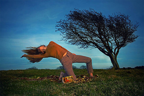 - "Esta é uma das minhas imagens mais recentes cujo planeamento mais se foca num conceito. Quis basear o tema na coluna vertebral e na quiroprática e encontrei uma árvore perfeita em South Downs para utilizar com poses criativas."