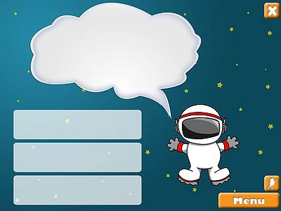 Na aplicação após uma pequena introdução em que aparece o nosso astronauta a flutuar com um foguetão a navegar