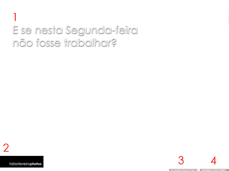 Esta é a página onde tudo acontece. Nesta página foi inserida uma frame com o site completo. A razão de o ser é, principalmente, para conseguir ter o player de música sempre activo e funcional, se assim não fosse a música mudava de página para página. Outra razão é do ponto de vista estético, o endereço da página será sempre o mesmo, como se fosse um site em flash.