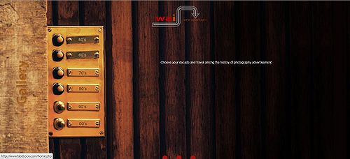 Na tag body decidimos colocar uma argem de 50px, e usar a família de fontes "Arial, Helvetica, sans-serif". A partir do css criámos dois botões, um na home e outro nas décadas. O da home é uma informação para o utilizador, e o na página das décadas serve para voltar ao elevador, a página mãe. Nas divs do logo e das molduras, colocámos opções que embelezam esteticamente e que tornam o site mais funcional. Nas tags de slider colocámos medidas para conter o slideshow a uma certa estrutura. No id container colocámos informação para restringir o espaço dos botões, para eles ficarem nas posições correctas. Para os botões previous e next nas galerias usámos posição absoluta no browser, para delimitar o comportamento do slider.