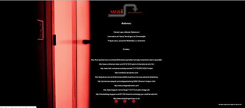 O nosso projecto tem o nome de WAI: We're Advertising It. Escolhemos este nome, pois o tema escolhido por nós é a publicidade fotográfica, e por isso mesmo achámos que fazer um trocadilho com o slogan de uma marca bastante conhecida pode cativar a curiosidade do utilizador. A publicidade fotográfica é um tema muito amplo, já existindo há bastantes décadas, e por isso mesmo resolvemos abordar a fotografia desde a década de 50 até aos dias de hoje. Vamos seleccionar as fotografias mais icónicas de cada época, pois é virtualmente impossível tratar todas as fotografias existentes até à data. Escolhemos criar um web site destinado a um publico interessado no tema, mas como queremos ter um tema mais formal, com um aspecto mais apelativo para um público mais culto e dedicado, decidimos que o público-alvo situa-se entre os 16 e os 40 anos.